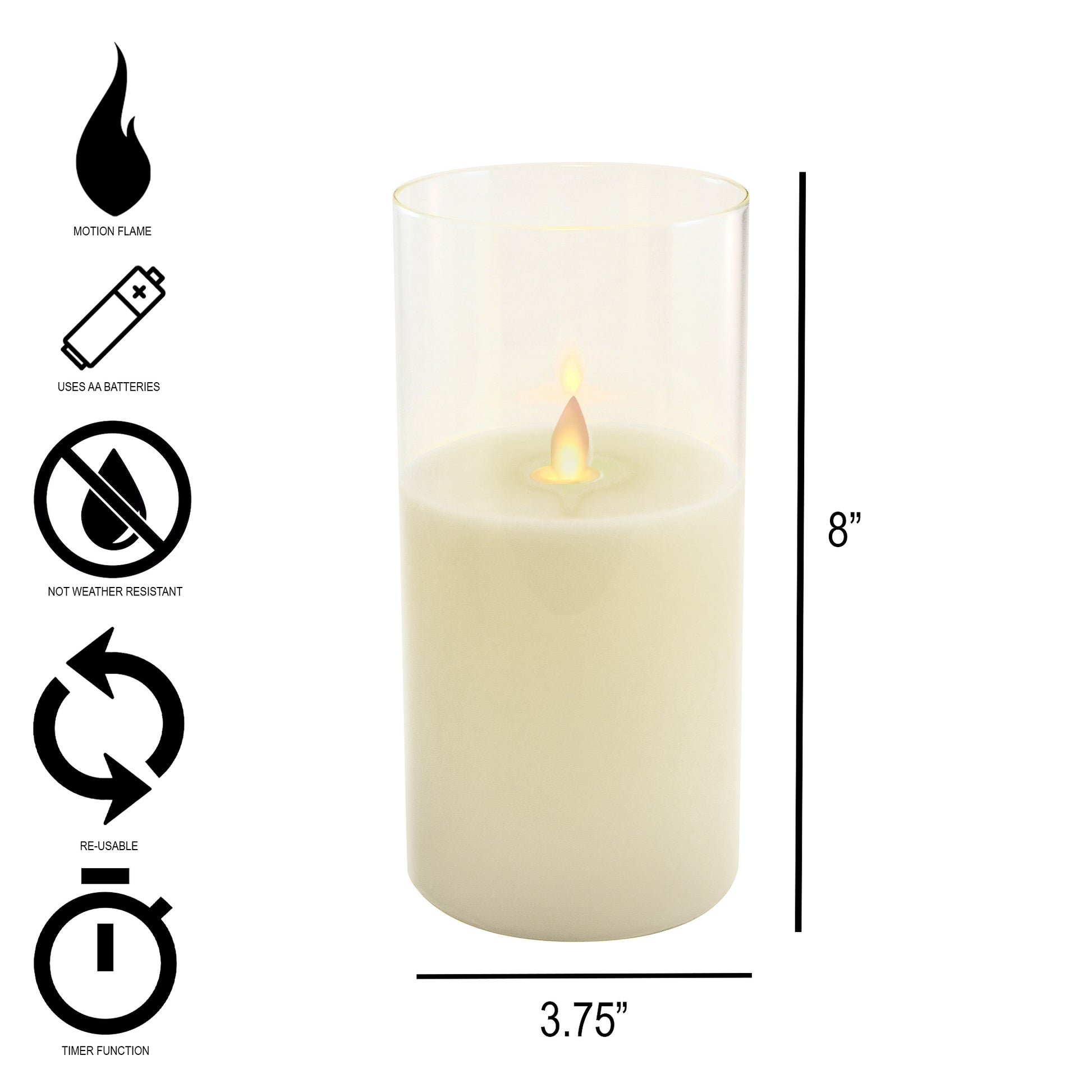 Enhance the ambiance of your home décor with this elegant battery-operated glass hurricane. Containing poured wax and a flickering flame, this realistic battery-operated LED glass hurricane provides an inviting glow that perfectly pairs with any modern, rustic, contemporary, or industrial décor. The moving flame looks so real and casts natural light, you'll think it's a real flame. Candle requires 3 AA batteries (not included).