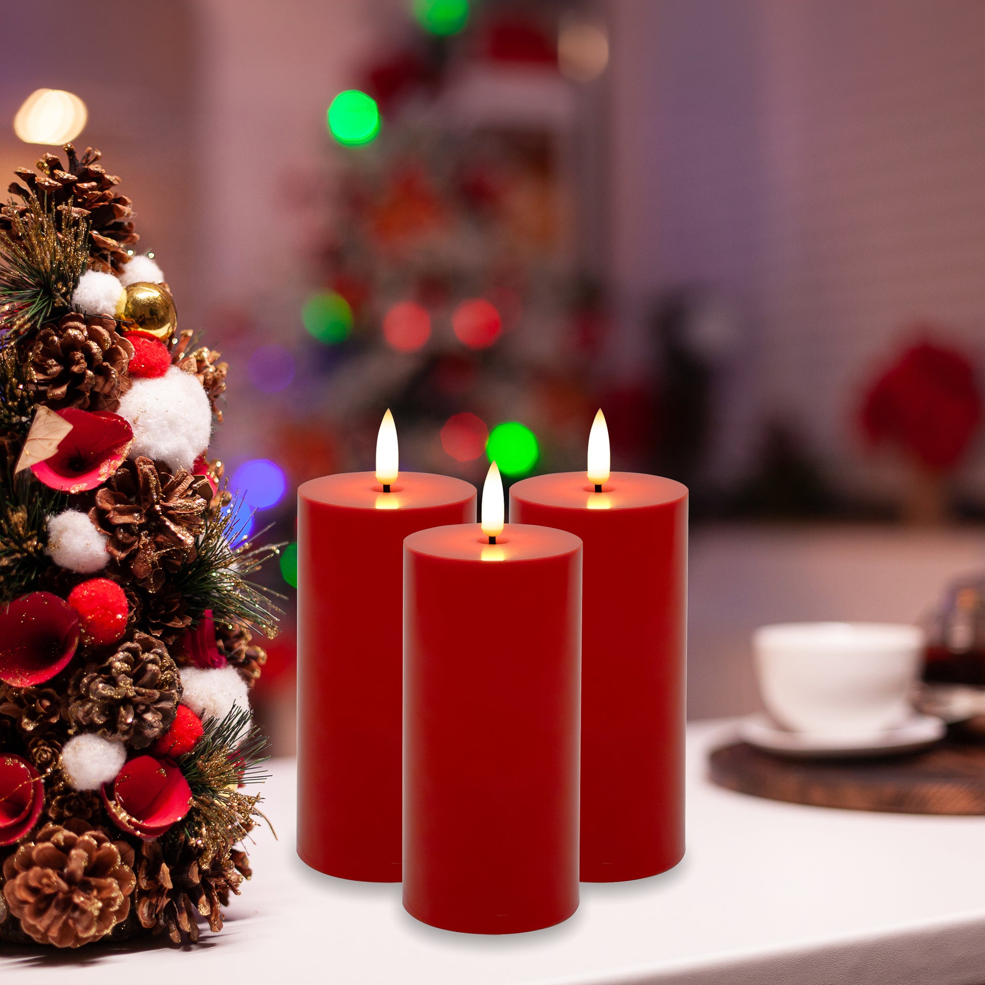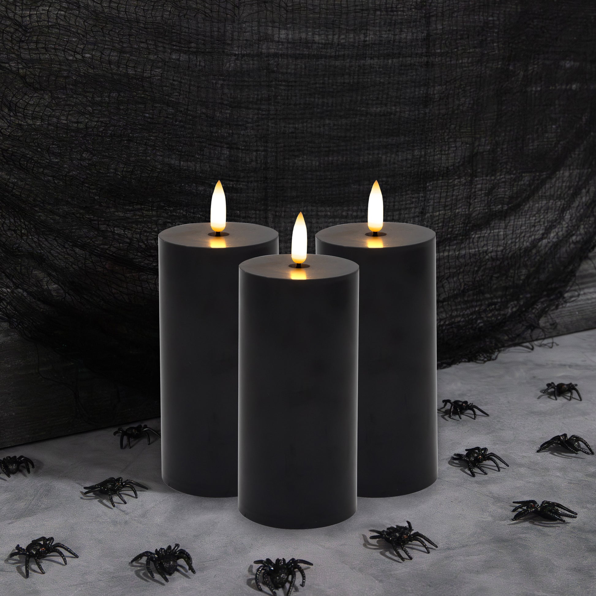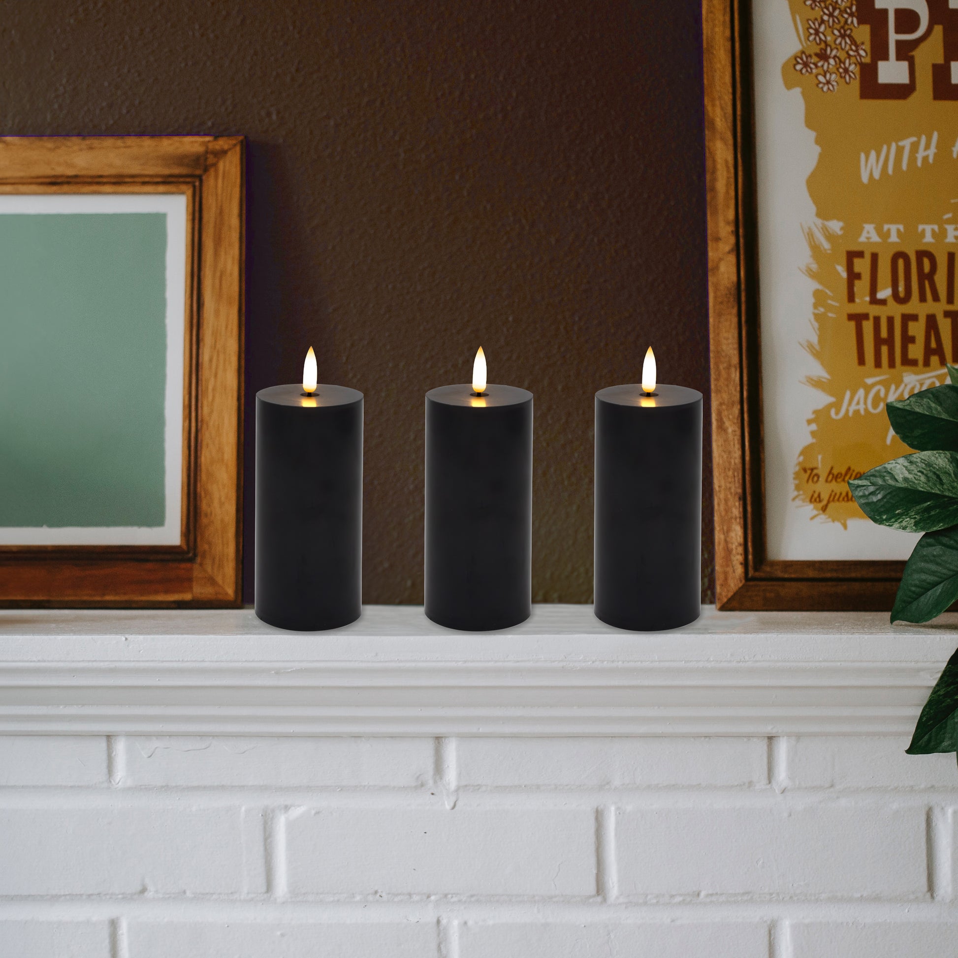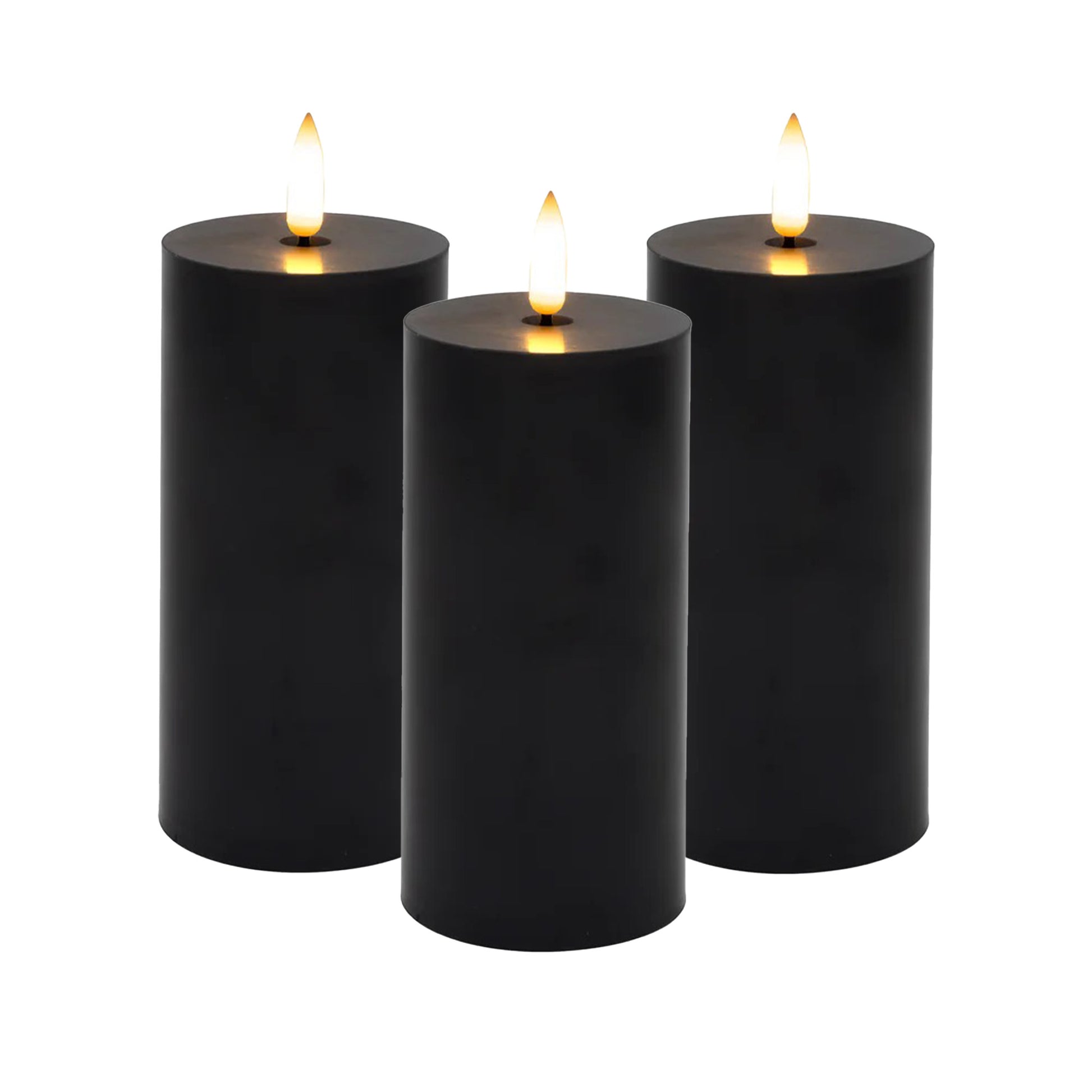 Battery-Operated 3D-Wick Pillar Candles - Set of 3