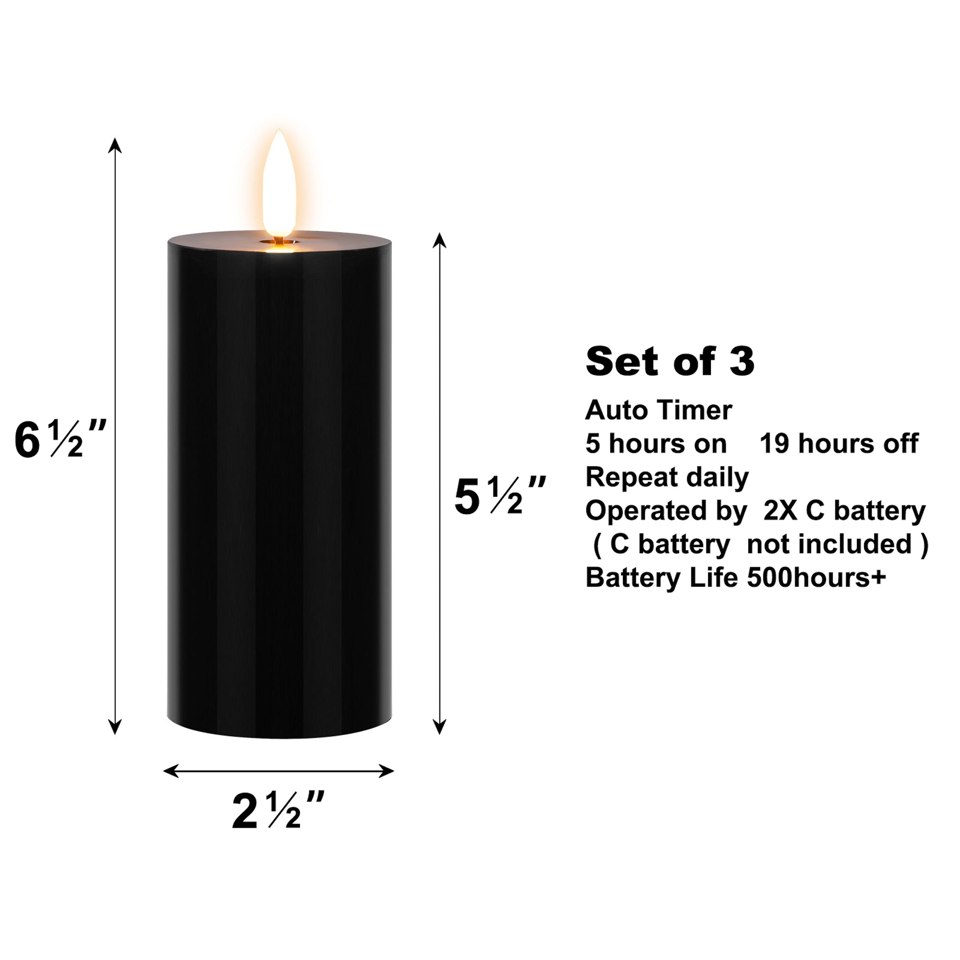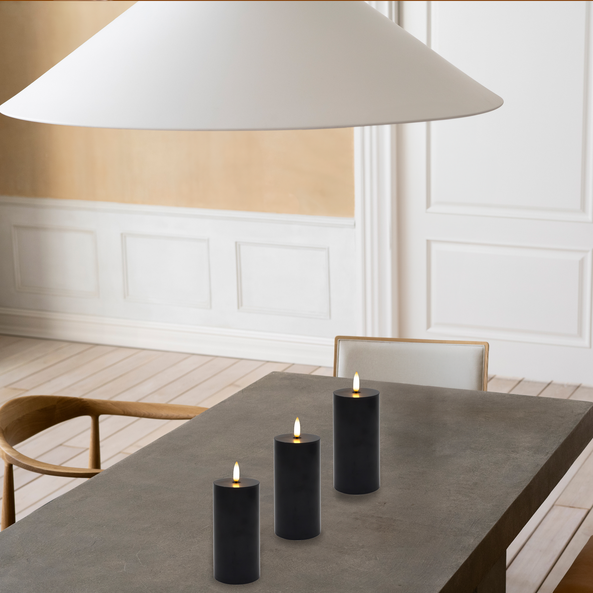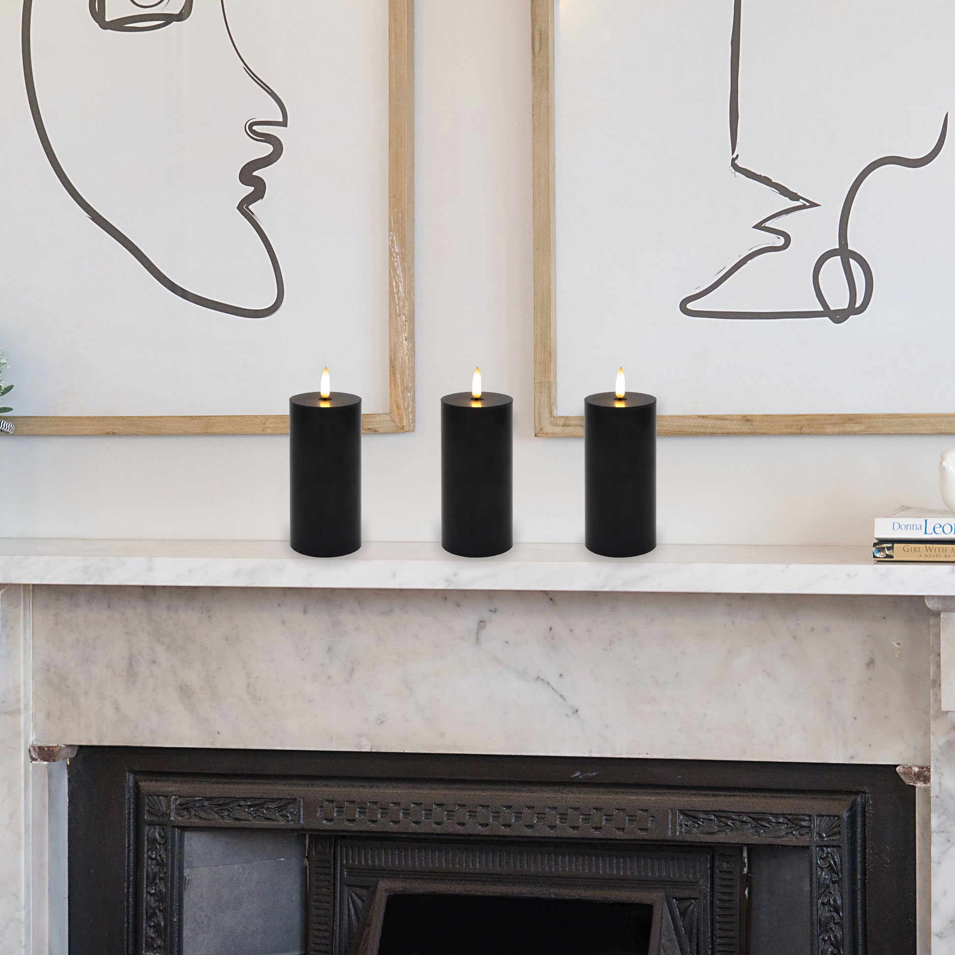 Battery-Operated 3D-Wick Pillar Candles - Set of 3