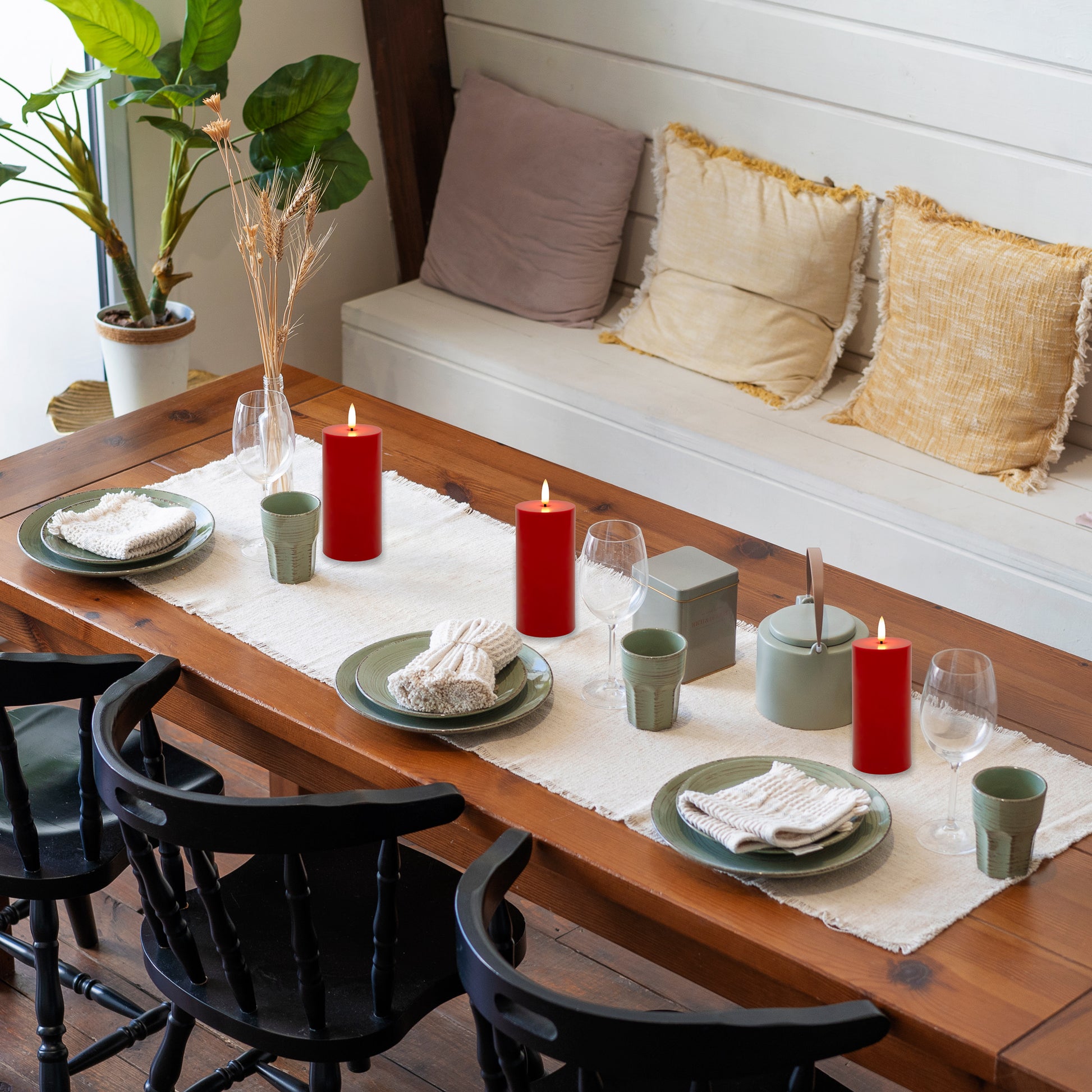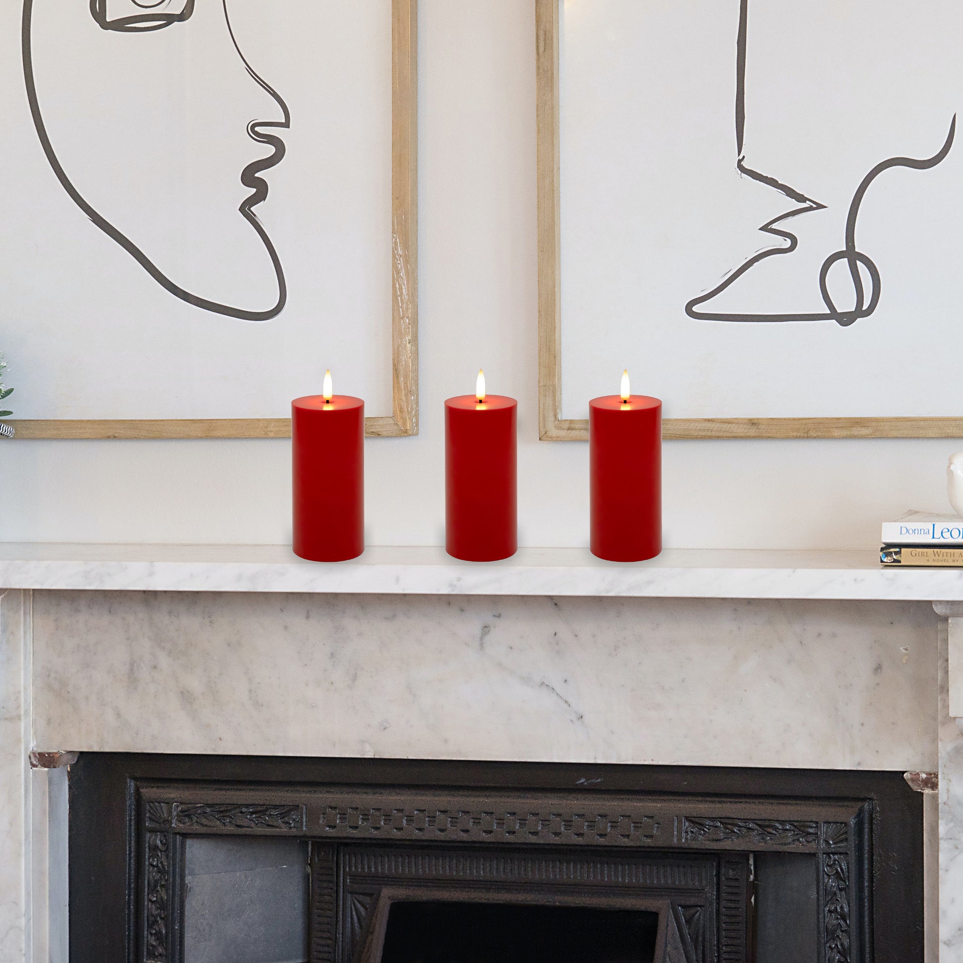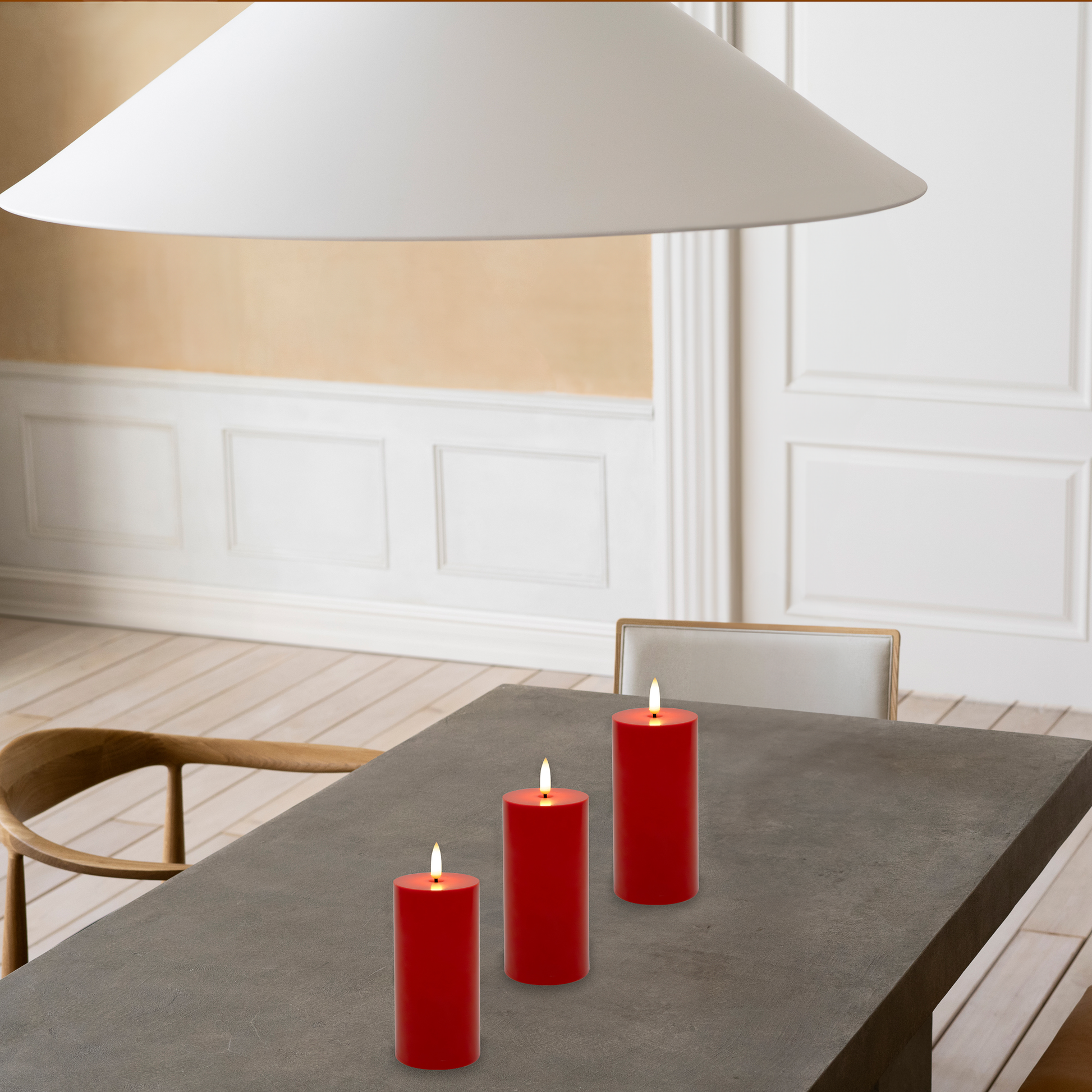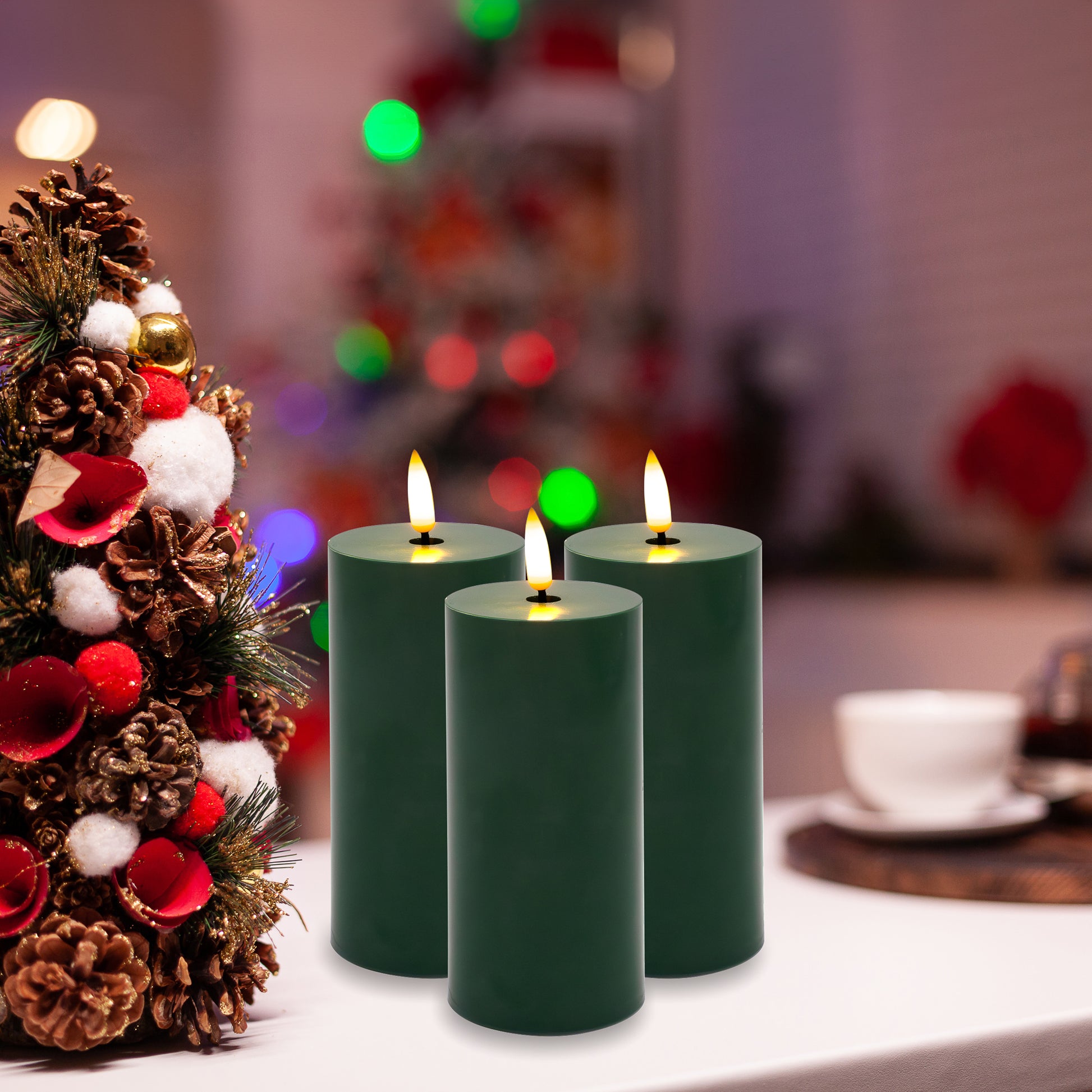 Battery-Operated 3D-Wick Pillar Candles - Set of 3