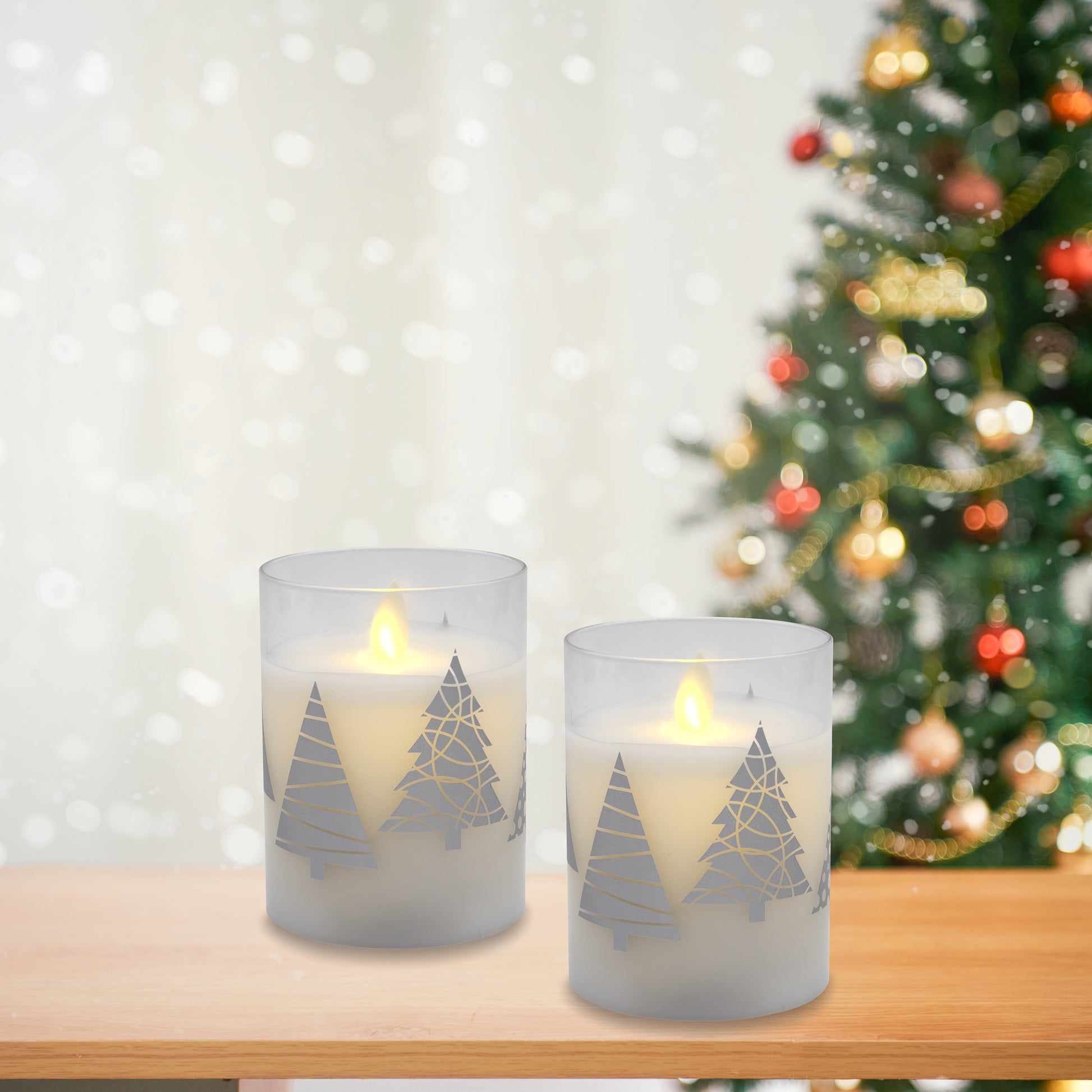 Battery Operated Glass LED Candles, Christmas Trees - Set of 2