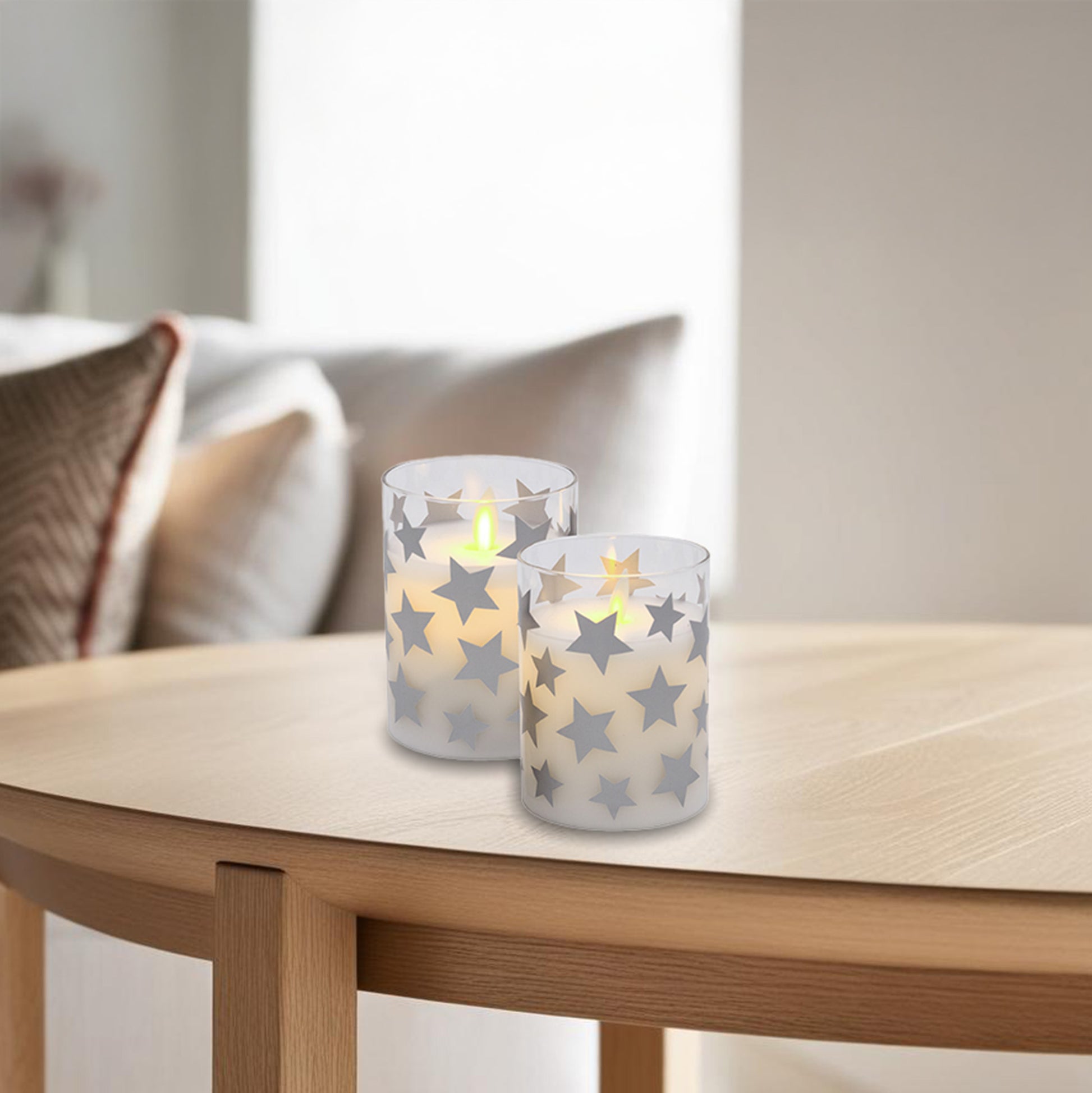 - Set of Two Flameless Candles with a Star Design