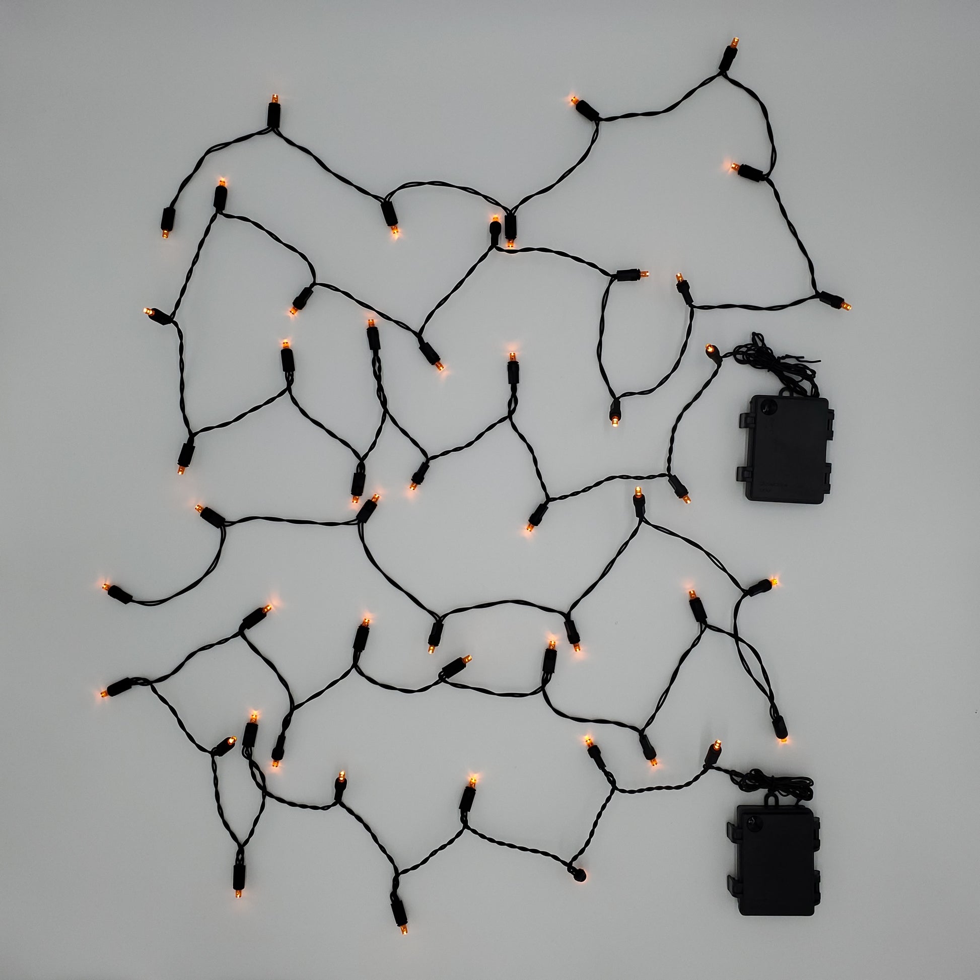 Battery-operated mini string lights will bring a spectacular ambiance to a special event, party, or celebration. This pair of string lights each have 25 lights on a 113" cord (50 total lights) that can be used indoors or outdoors. They add perfect accent lighting to a wreath, centerpiece, mantel, or table setting.