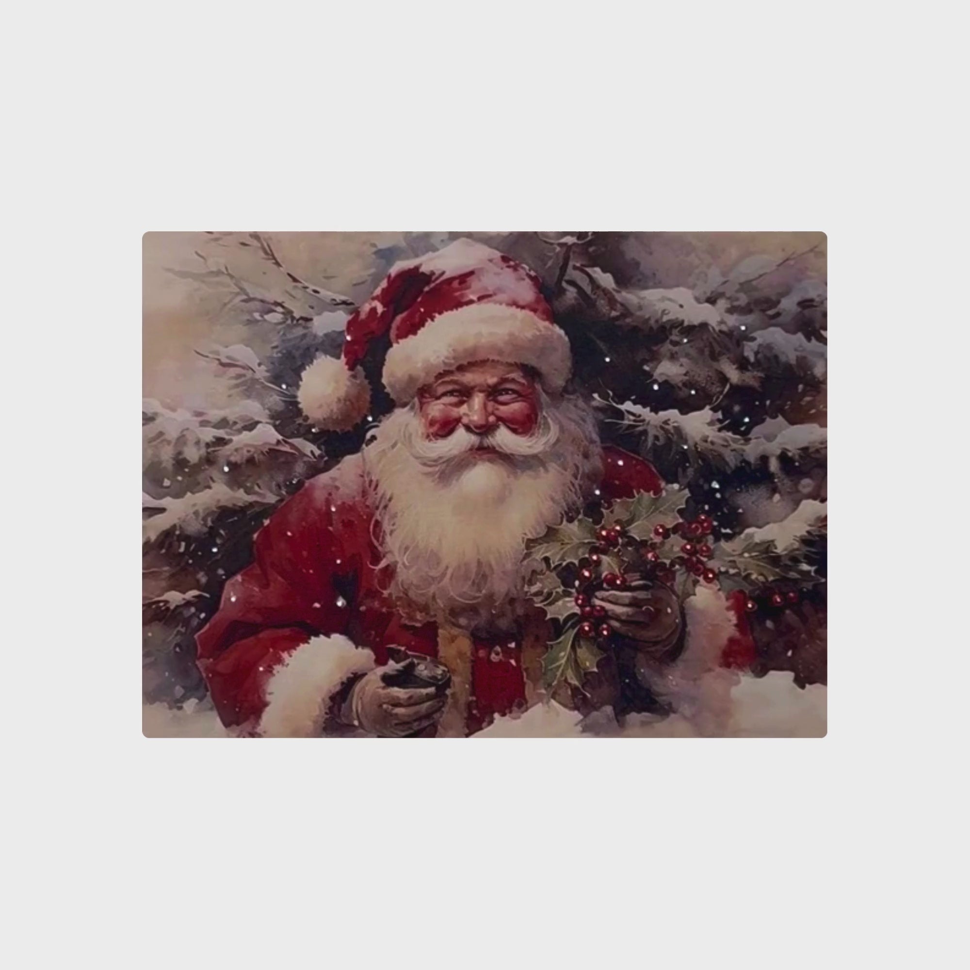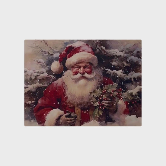 Decorate your home for Christmas with the lovely battery-operated "Jolly St. Nick" lighted wall art. The canvas features Santa in his bright red suit holding a bough of holly berries in a snow-covered forest. Steady cool white LED lights emphasize the falling snow and steady amber LED lights accent the holly berries. This beautifully printed canvas wall art is the perfect addition to your Christmastime home décor. The full-color canvas will look delightful whether it is hung on a wall or placed on a shelf or mantel. Included is a remote control, making it convenient to turn on and off.