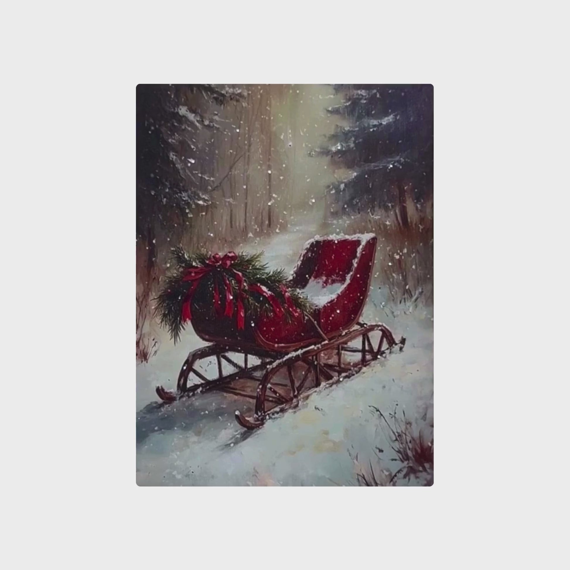 Decorate your home for winter with the lovely battery-operated "Winter Sleigh" lighted wall art. The canvas features a red sleigh adorned with red ribbons and evergreen boughs in a peaceful snow-covered forest. Twinkling cool white LED lights emphasize the falling snow and a steady warm white LED light accents the sleigh. This beautifully printed canvas wall art is the perfect addition to your wintertime home décor. The full-color canvas will look delightful whether it is hung on a wall or placed on a shelf or mantel. Included is a remote control, making it convenient to turn on and off.