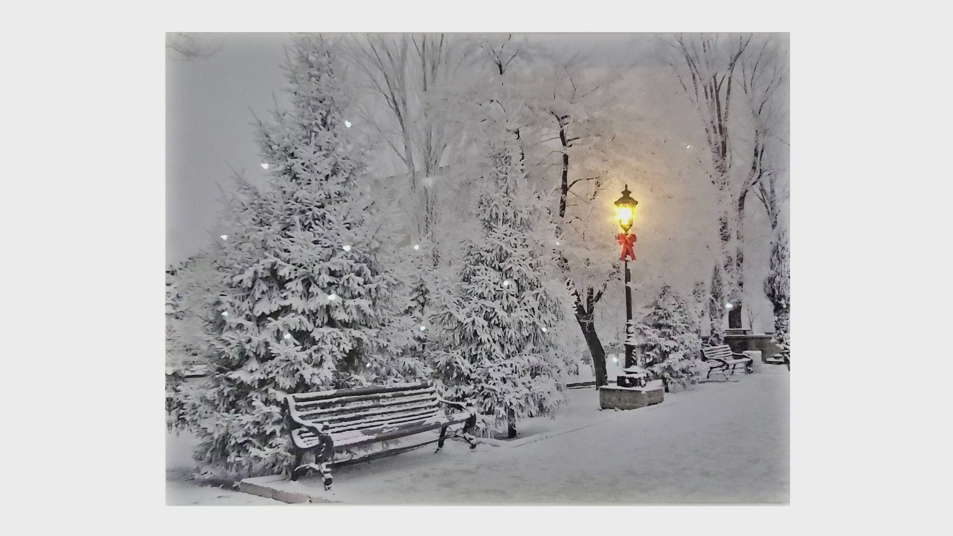 Decorate your home for winter with the lovely battery-operated "Winter Wonderland" lighted wall art. The snow-covered pine trees, winter bench, and streetlamp create a peaceful winter scene. A glowing amber LED light illuminates the street light as twinkling cool white LED lights emphasize the falling snow to complete the wintry scene. The full-color canvas will look delightful whether it is hung on a wall or placed on a shelf or mantel. Included is a remote control, making it convenient to turn on and off.