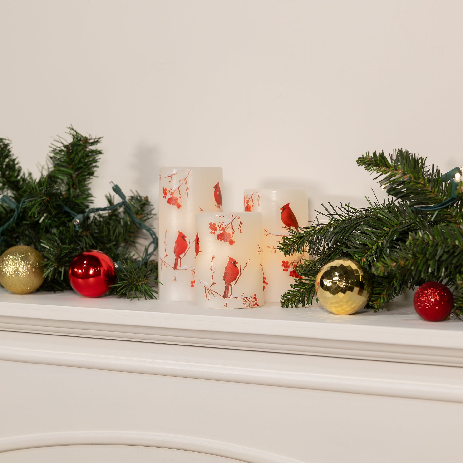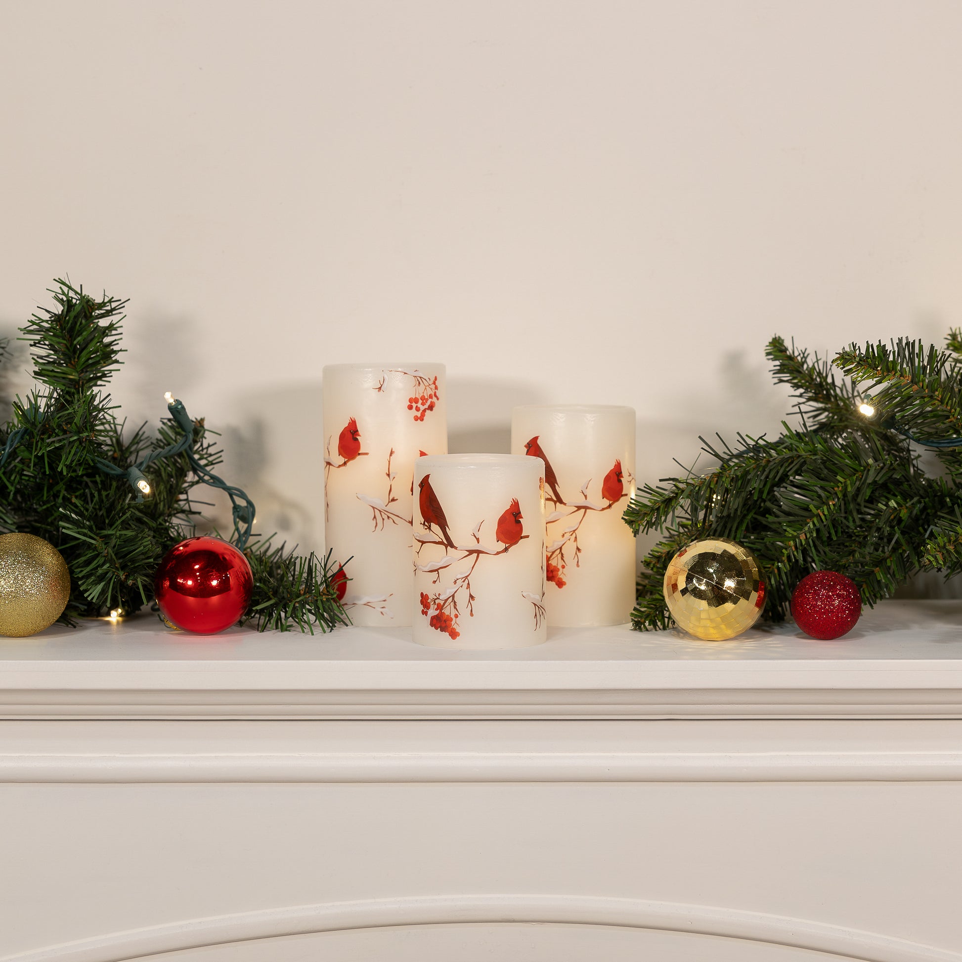Battery-Operated Wax Candles with Cardinal Design - Set of 3