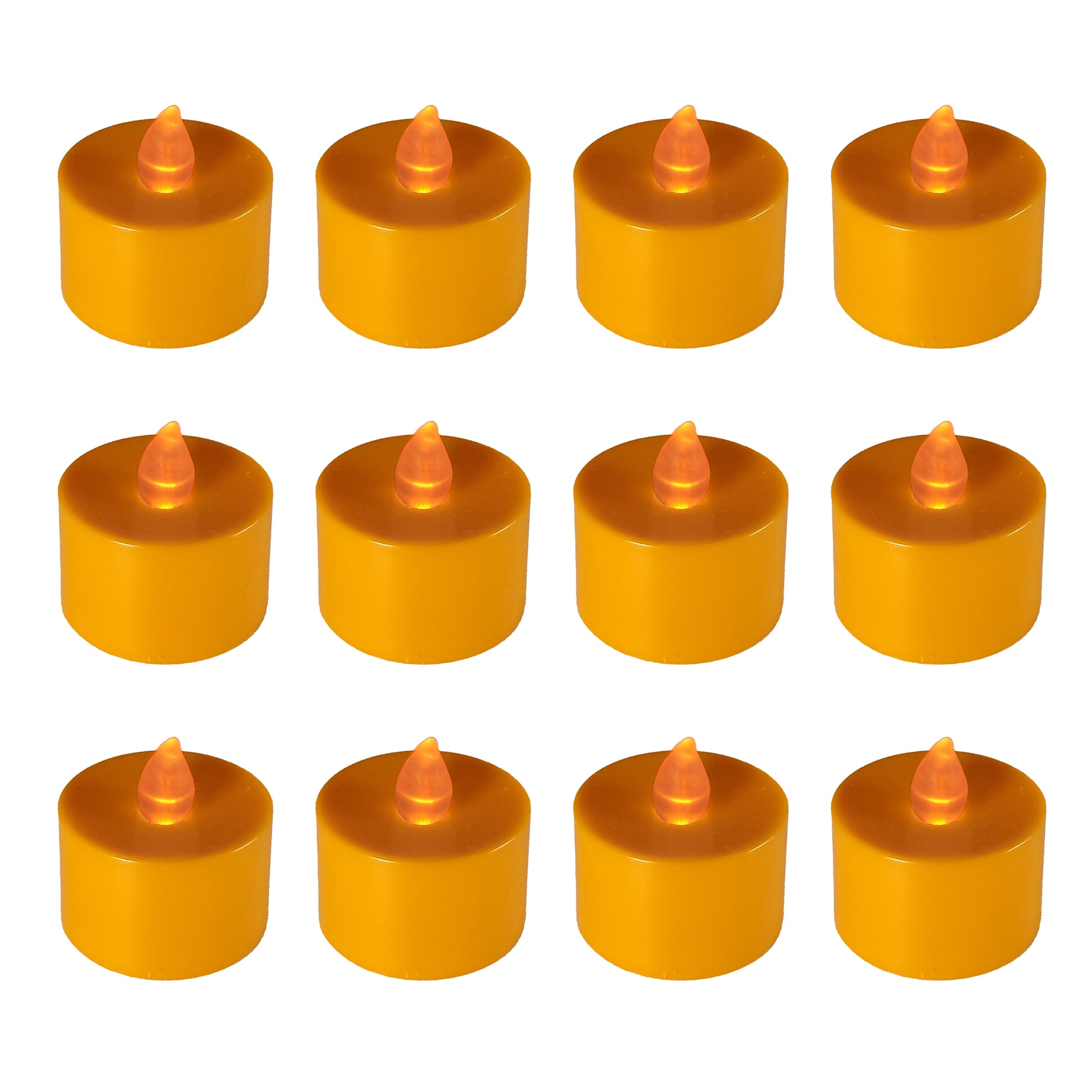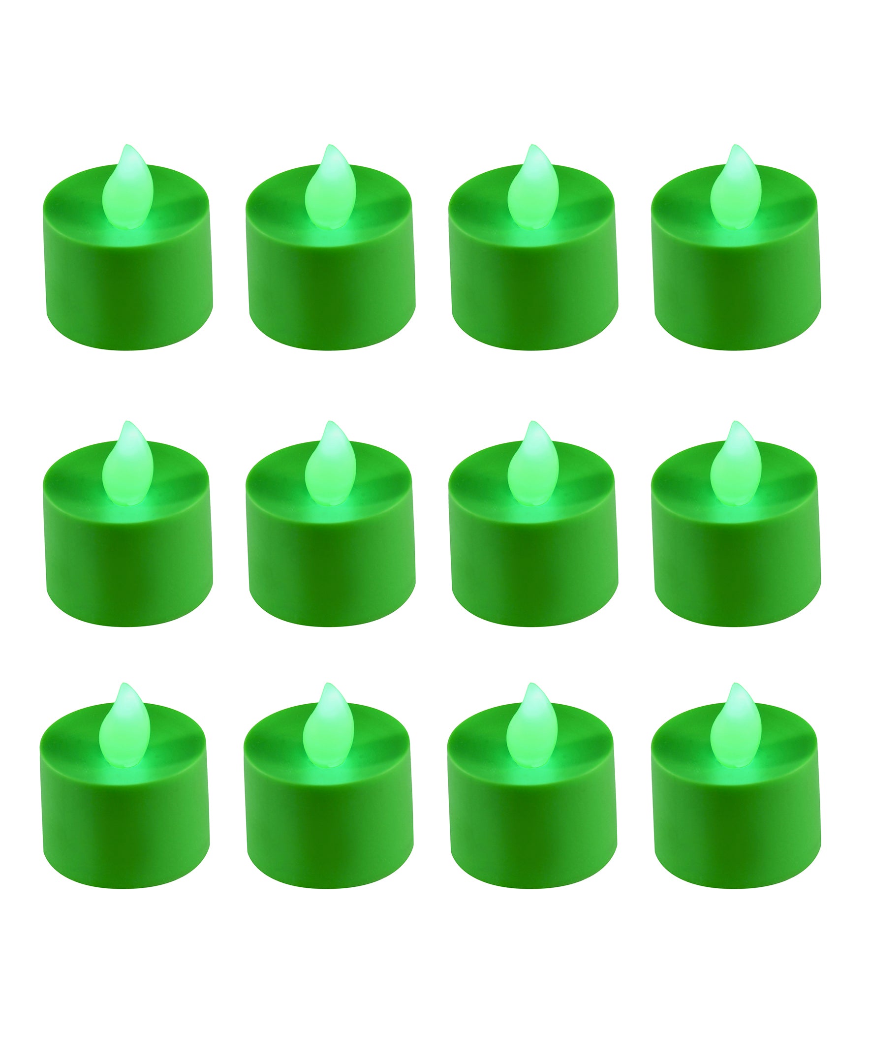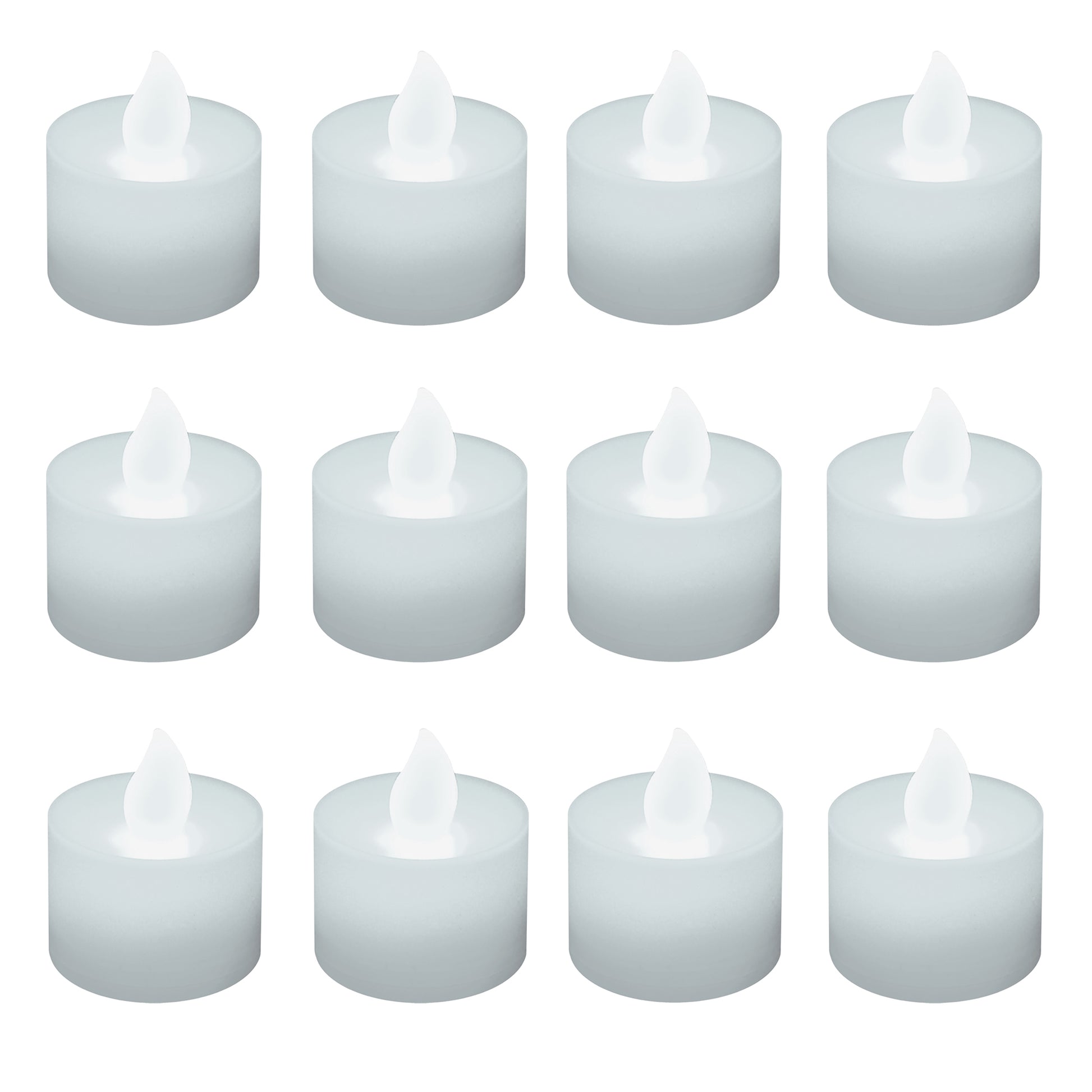 Illuminate a party, event, or everyday home décor with the twinkling glow of battery-operated tea light candles. This set of 12 flameless candles are a safe and easy alternative to traditional candlelight. They turn on from the base with the push of a button and are supplied with CR2032 batteries. The colorful glow of LED tea lights add brilliant illumination when used in clear glass holders or stand alone on tables, mantles and table settings for special occasions or everyday home décor.