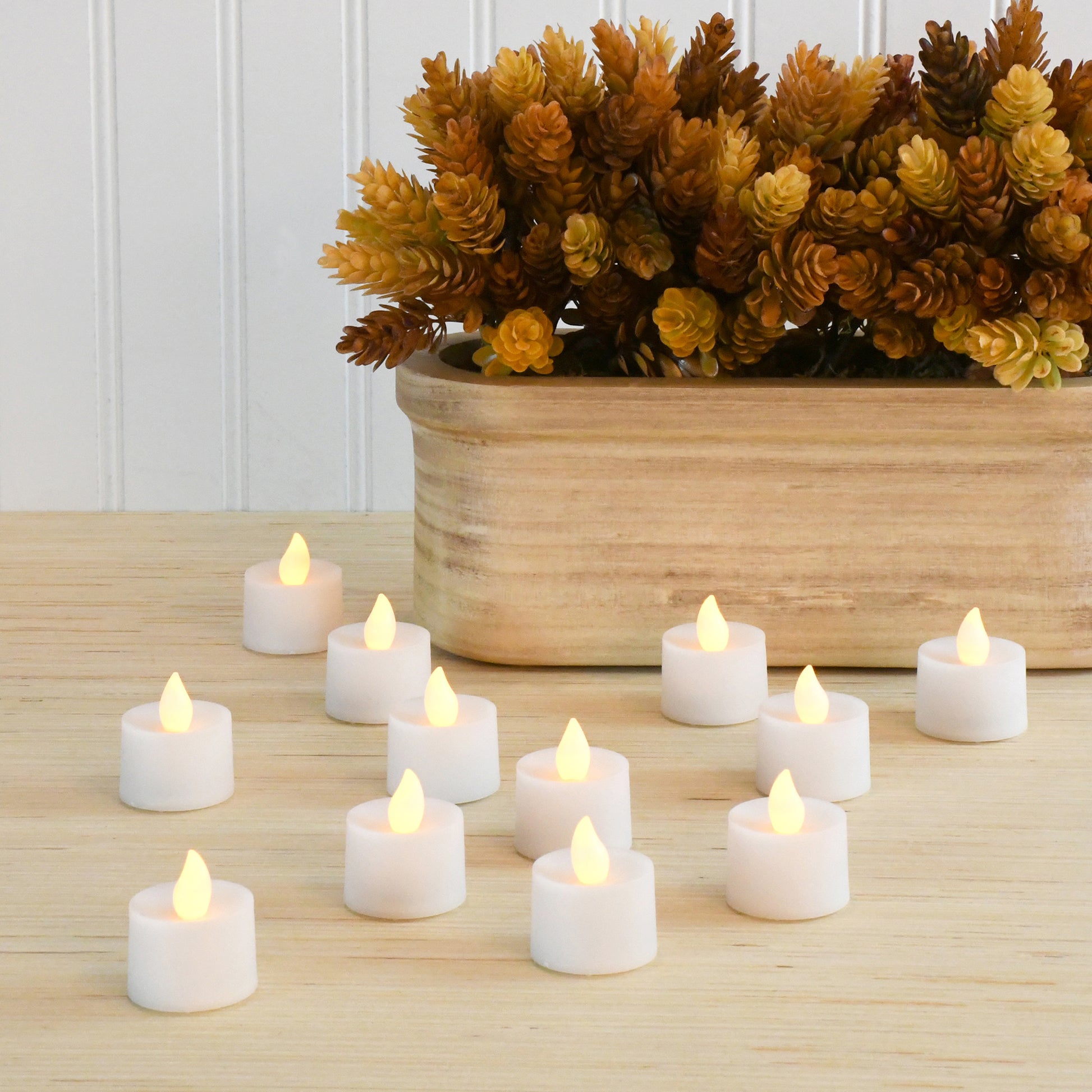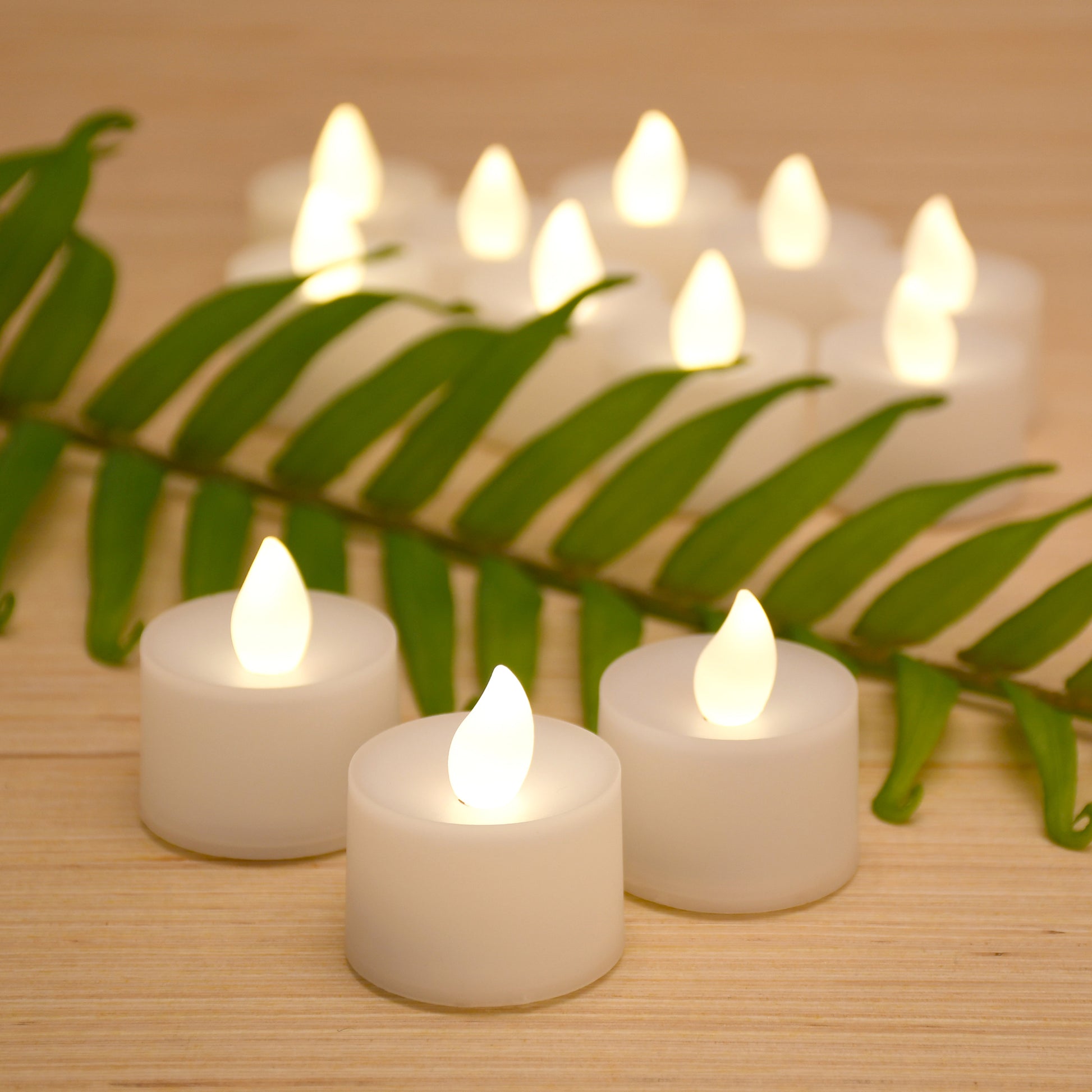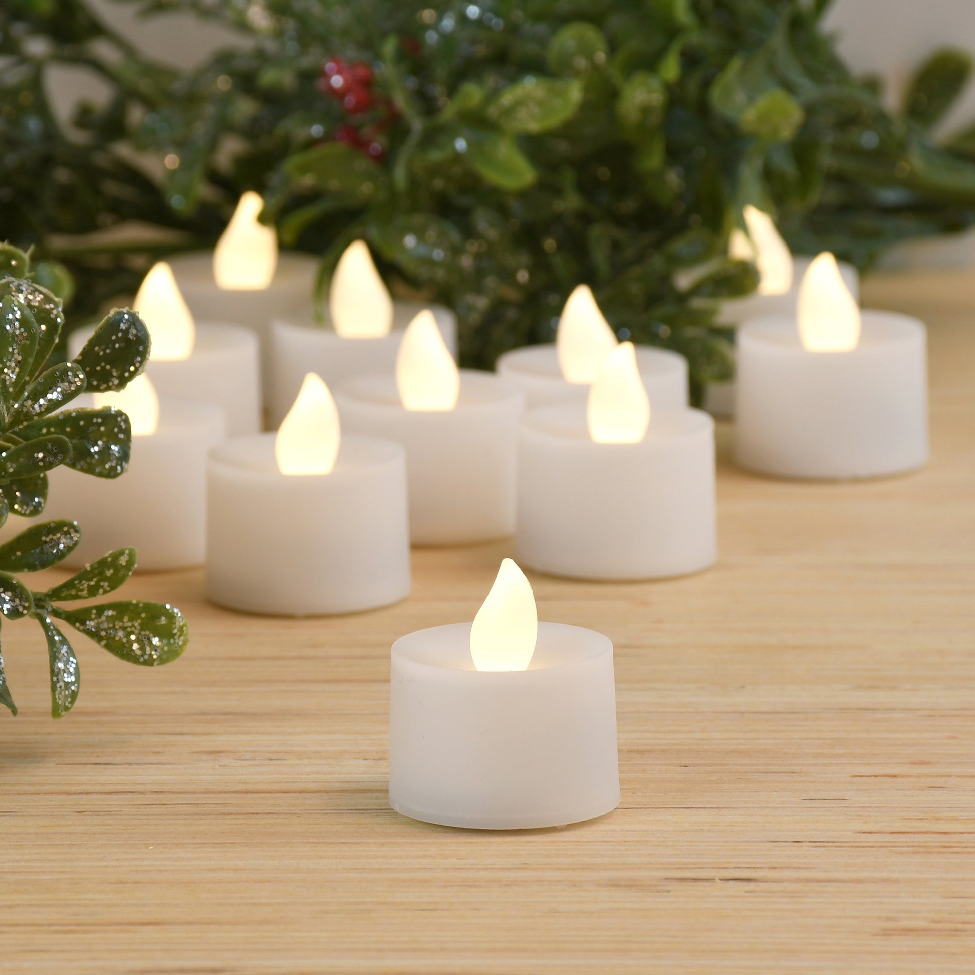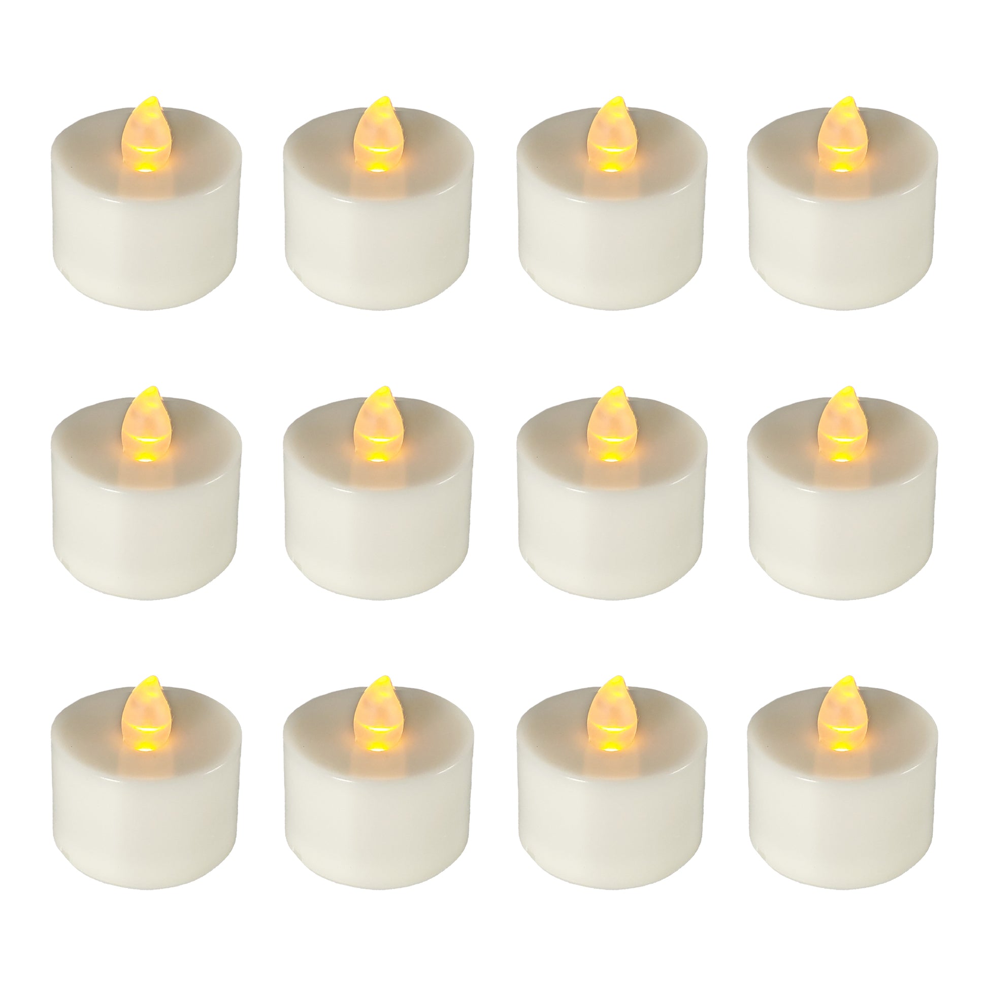 Illuminate a party, event, or everyday home décor with the twinkling glow of battery-operated tea light candles. This set of 12 flameless candles are a safe and easy alternative to traditional candlelight. They turn on from the base with the push of a button and are supplied with CR2032 batteries. The colorful glow of LED tea lights add brilliant illumination when used in clear glass holders or stand alone on tables, mantles and table settings for special occasions or everyday home décor.