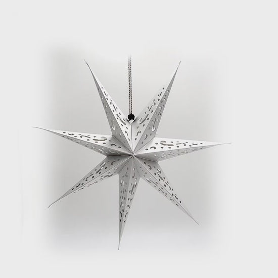 Elegant star-shaped hanging lanterns are a beautiful way to decorate for a party or event. This set of 3 metallic lanterns are made from cardboard with a intricate punched out swirl design. The die cut swirls allow in natural light to enhance the overall design. The pull cord opens, locks, secures and hangs the lantern.