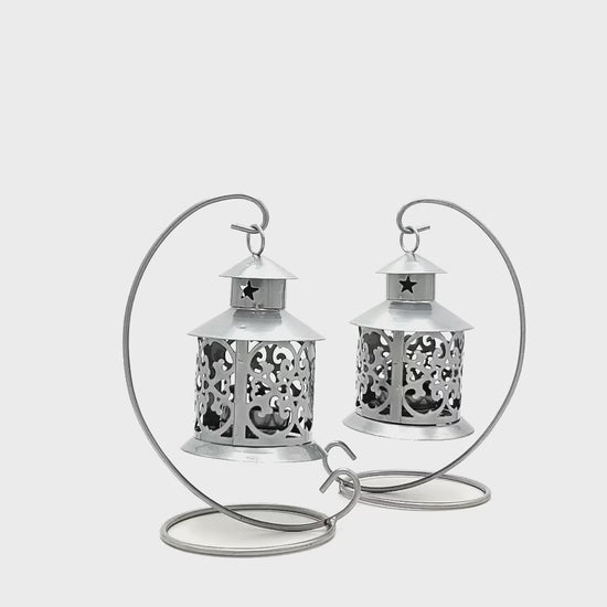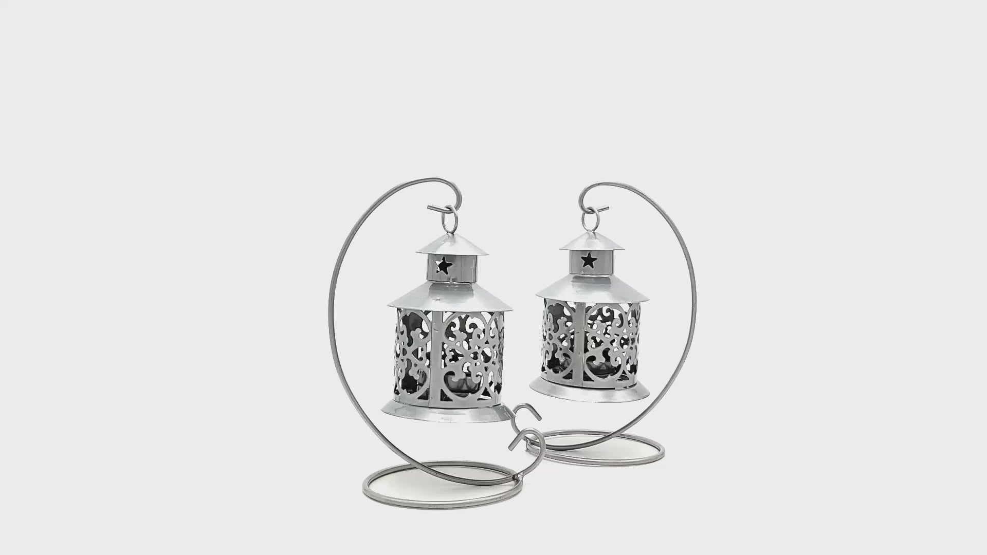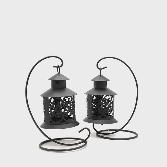 - Includes: Two Tabletop Metal Lanterns with Hanging Hooks