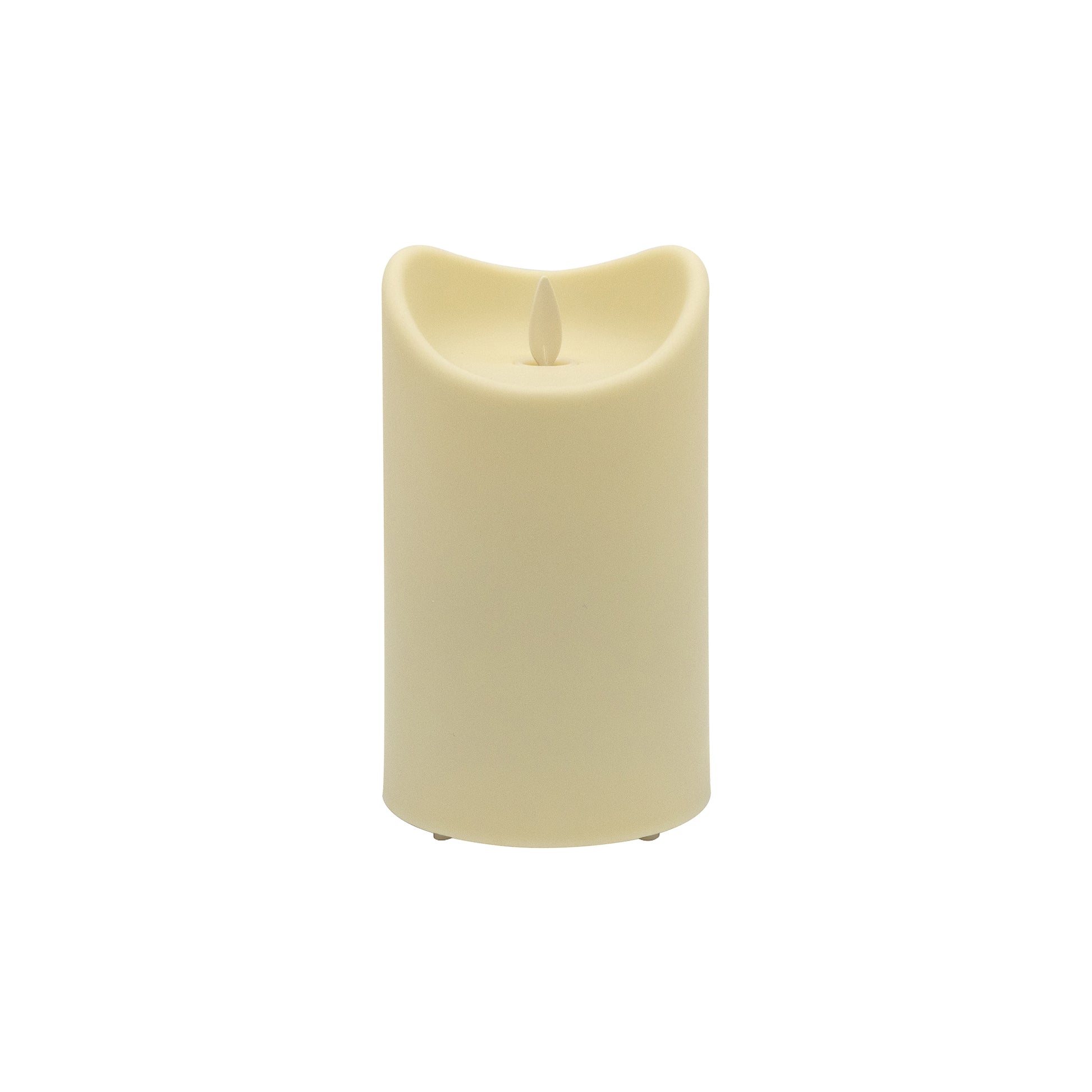 This weather-resistant pillar candle with flickering flame is versatile for indoor and outdoor use. This elegant, battery-operated cream candle is unscented and features a convenient built-in timer for 5 hours on and 19 hours off. It provides the beautiful look of a real candle without the risk of a burning flame. The weather-resistant plastic construction keeps the candle surface clean and smooth without the chance of dents. The moving flame looks so authentic and casts such natural light, you’ll think it’s a real burning candle. Candle requires 2 D batteries (not included).