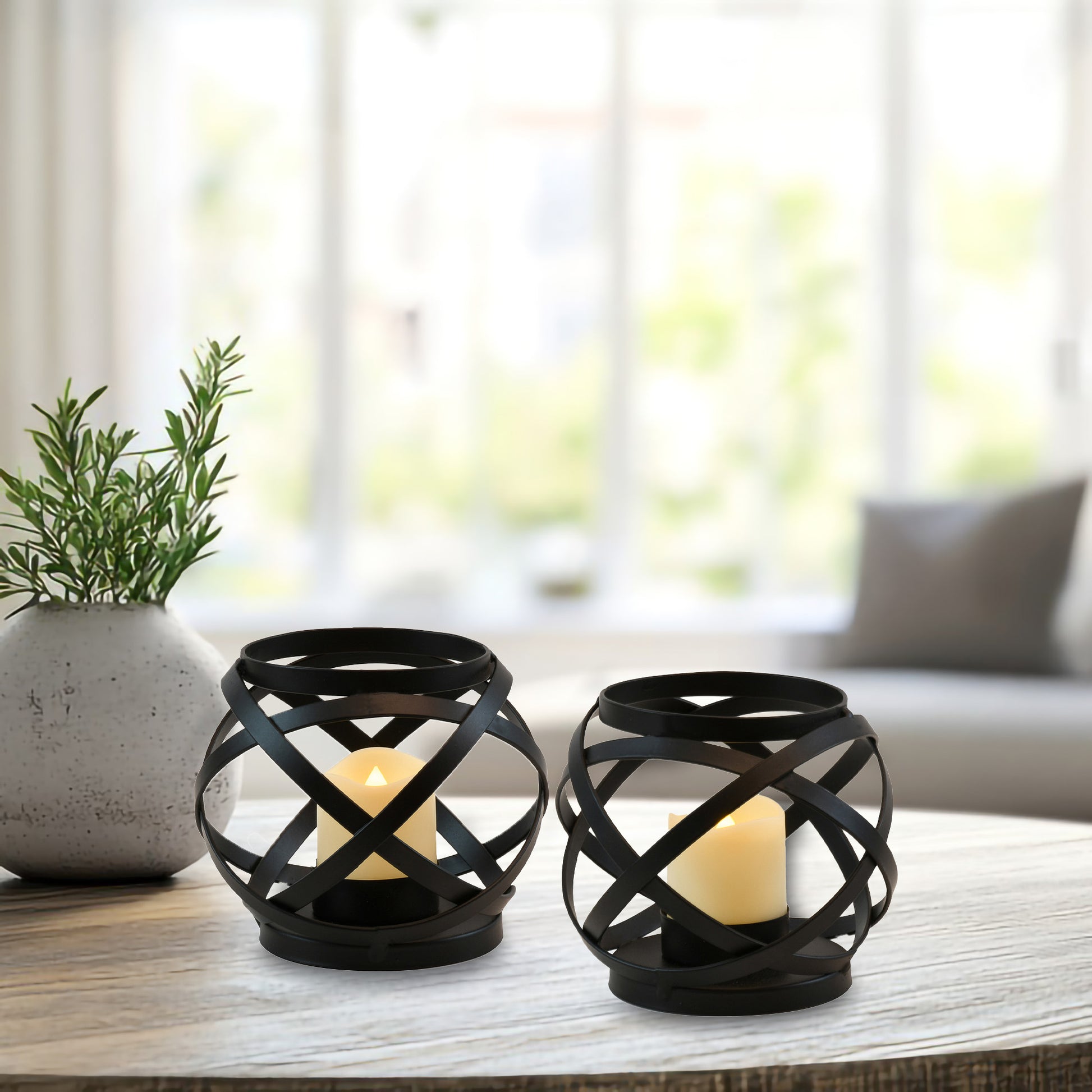 - Set of 2 Metal Candleholders with Battery-Operated Candles